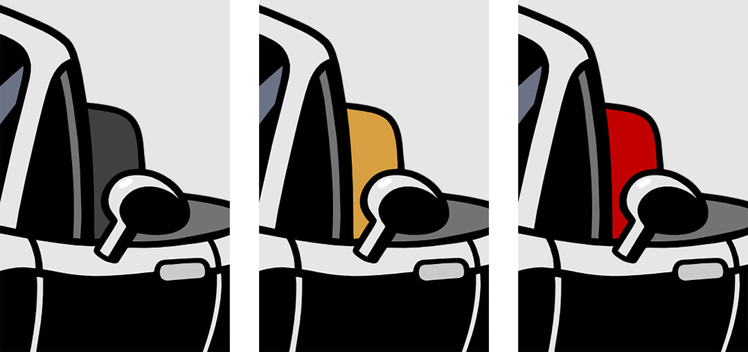 From sketch to finished color, each car is passionately illustrated by hand with thoughtful details and playful exaggeration in its proportions.