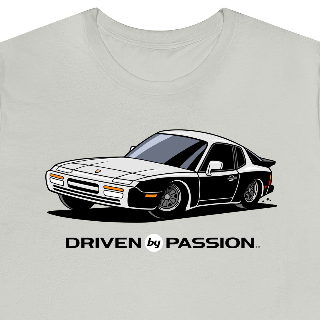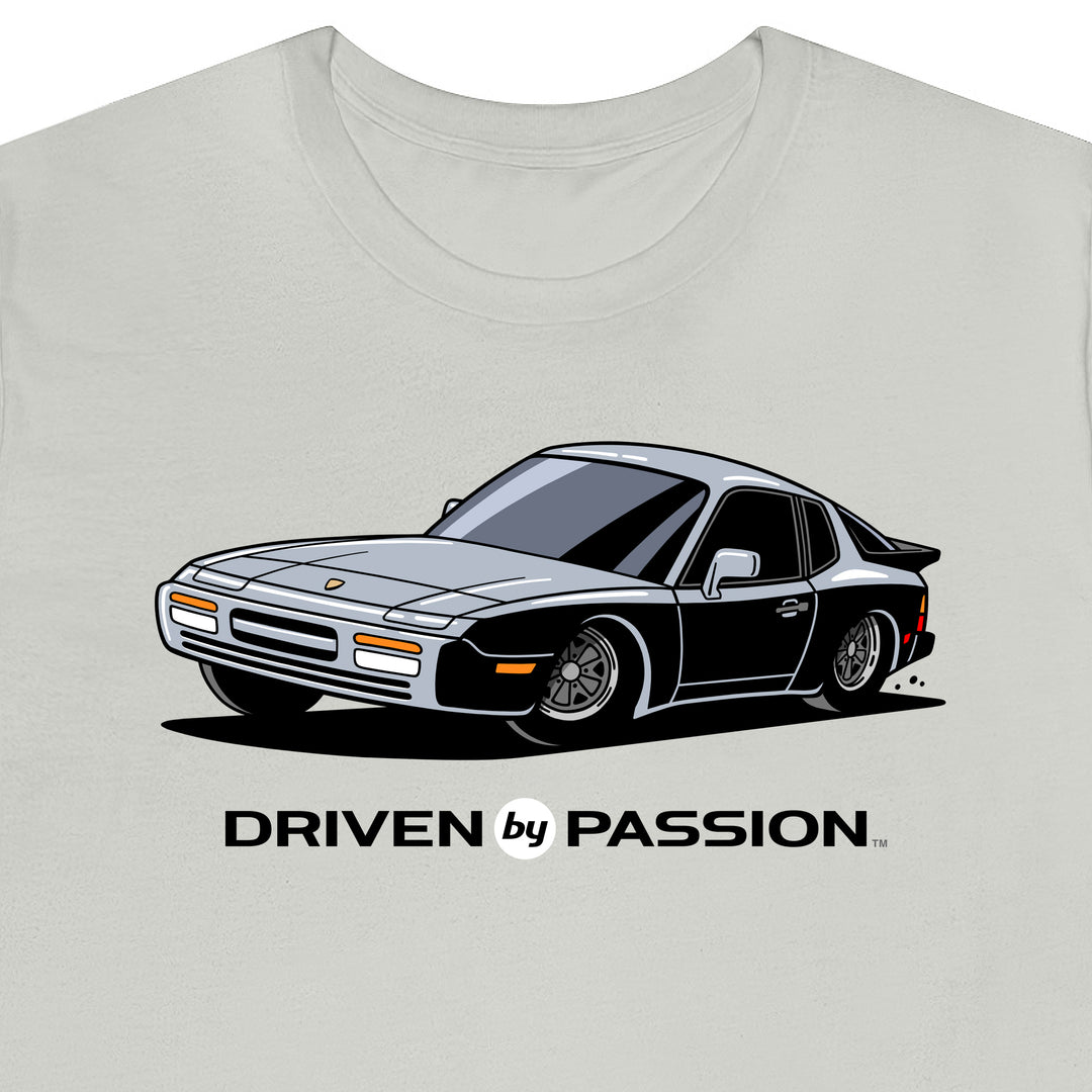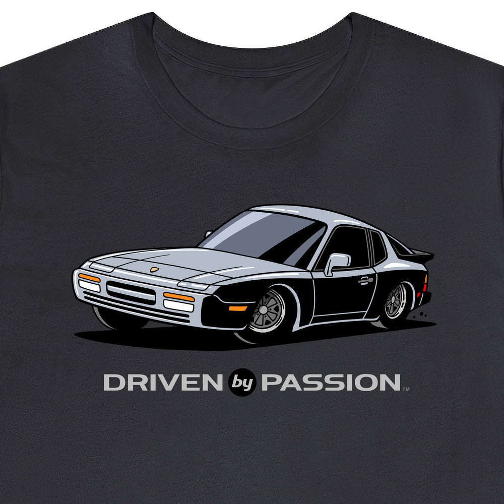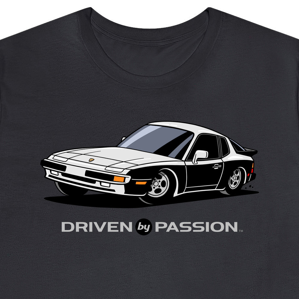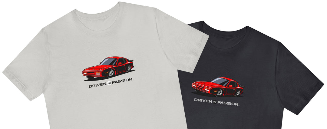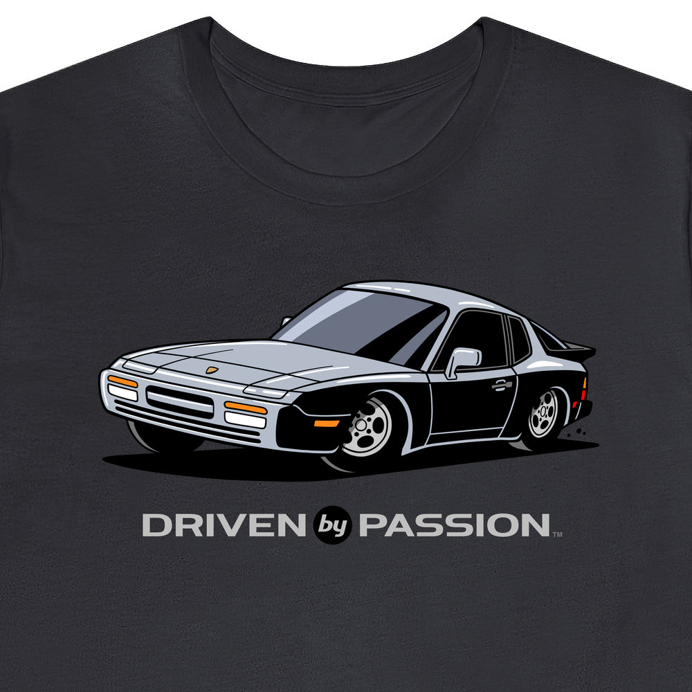 The 944 is the most iconic of the German carmaker's front engine sports cars with a curvaceous body that went against the grain of 1980s geometric styling. Yet it’s oh-so 80s. Get yourself a premium t-shirt featuring your favorite body with your choice of color and wheels.
