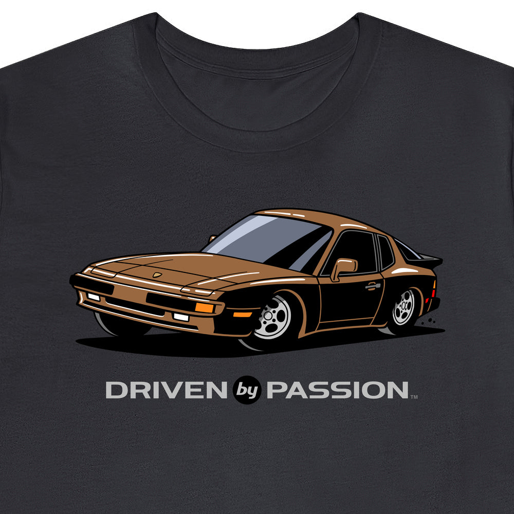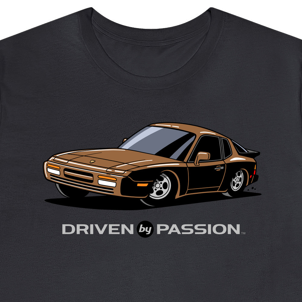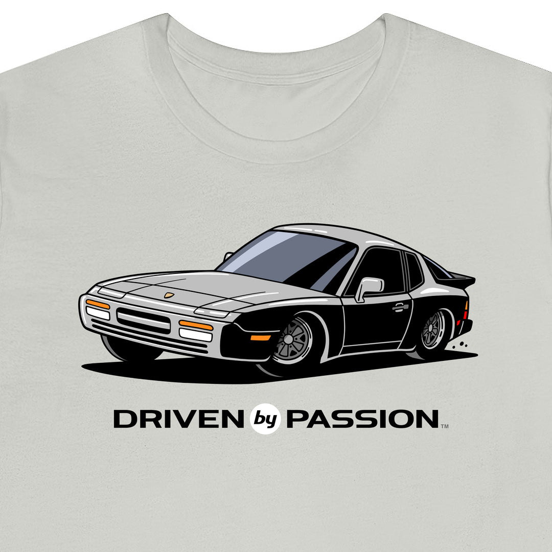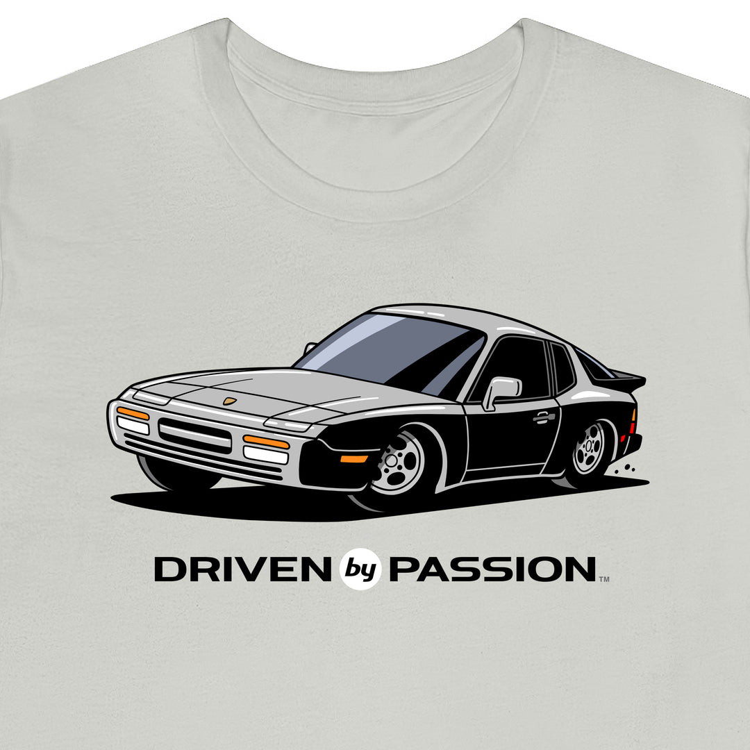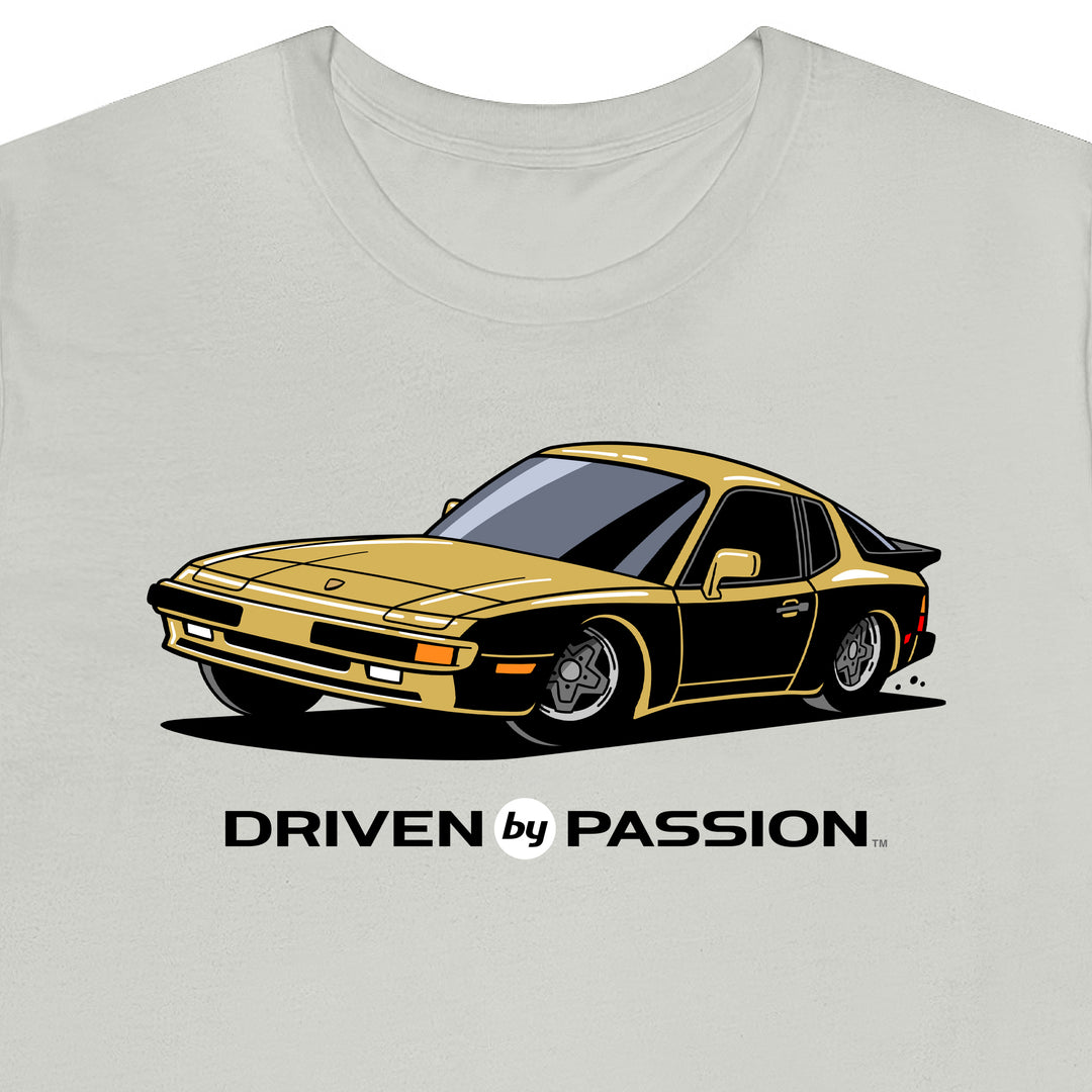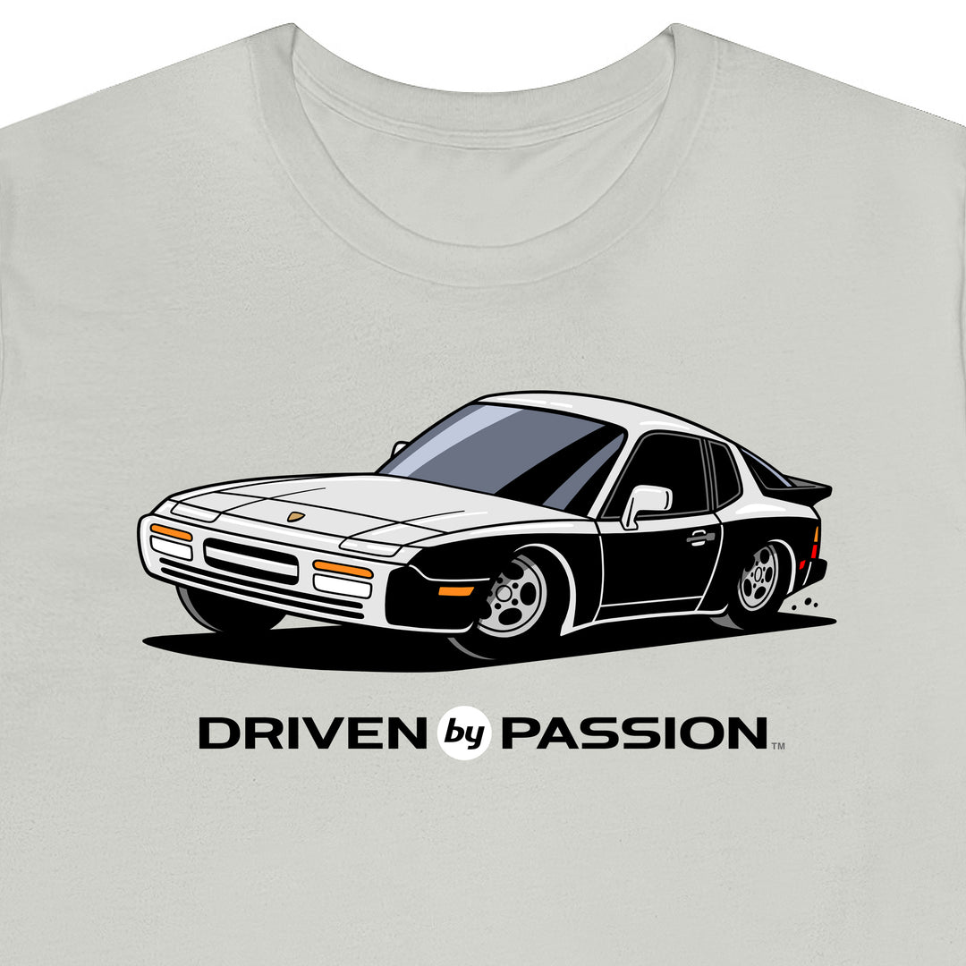 The 944 is the most iconic of the German carmaker's front engine sports cars with a curvaceous body that went against the grain of 1980s geometric styling. Yet it’s oh-so 80s. Get yourself a premium t-shirt featuring your favorite body with your choice of color and wheels.