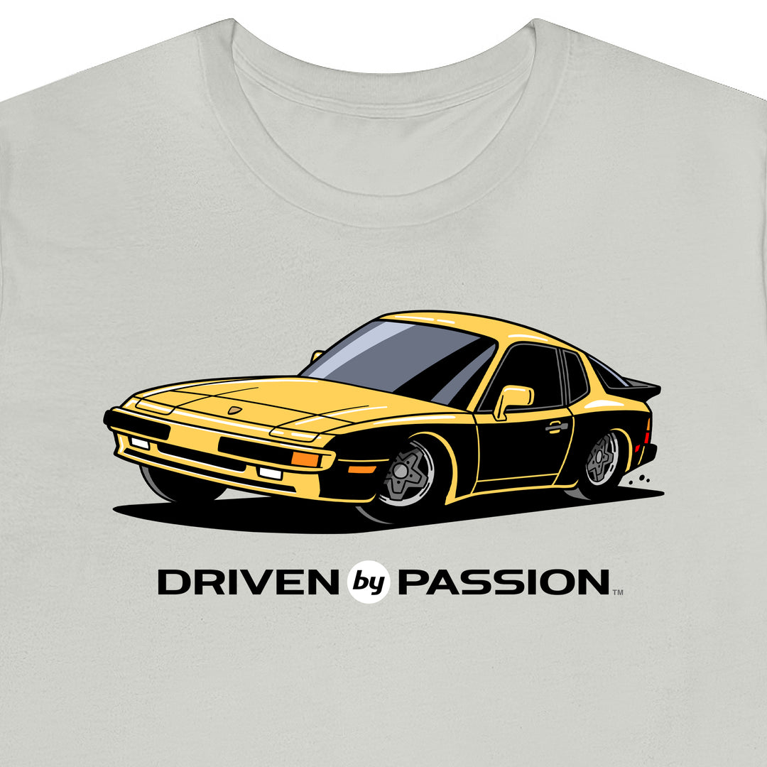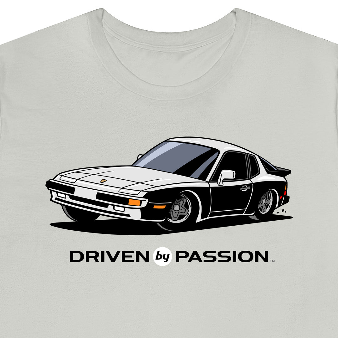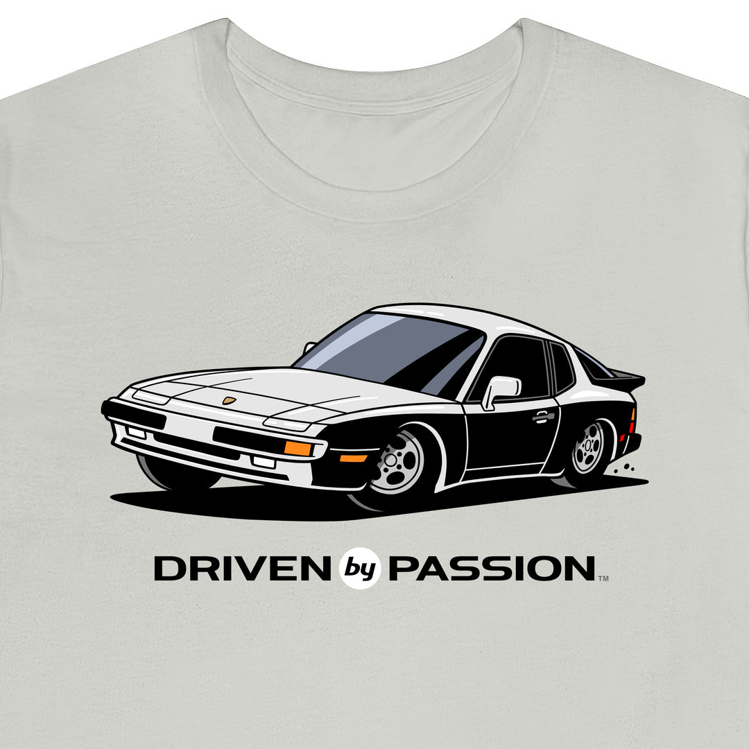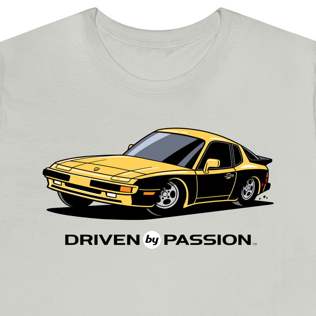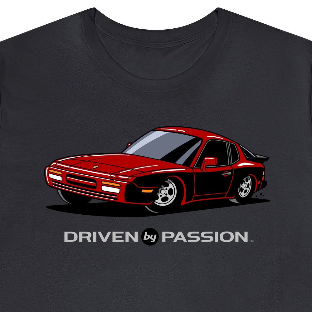 The 944 is the most iconic of the German carmaker's front engine sports cars with a curvaceous body that went against the grain of 1980s geometric styling. Yet it’s oh-so 80s. Get yourself a premium t-shirt featuring your favorite body with your choice of color and wheels.