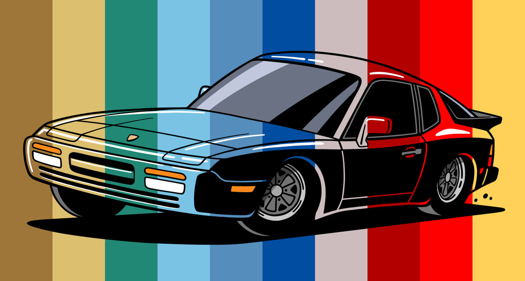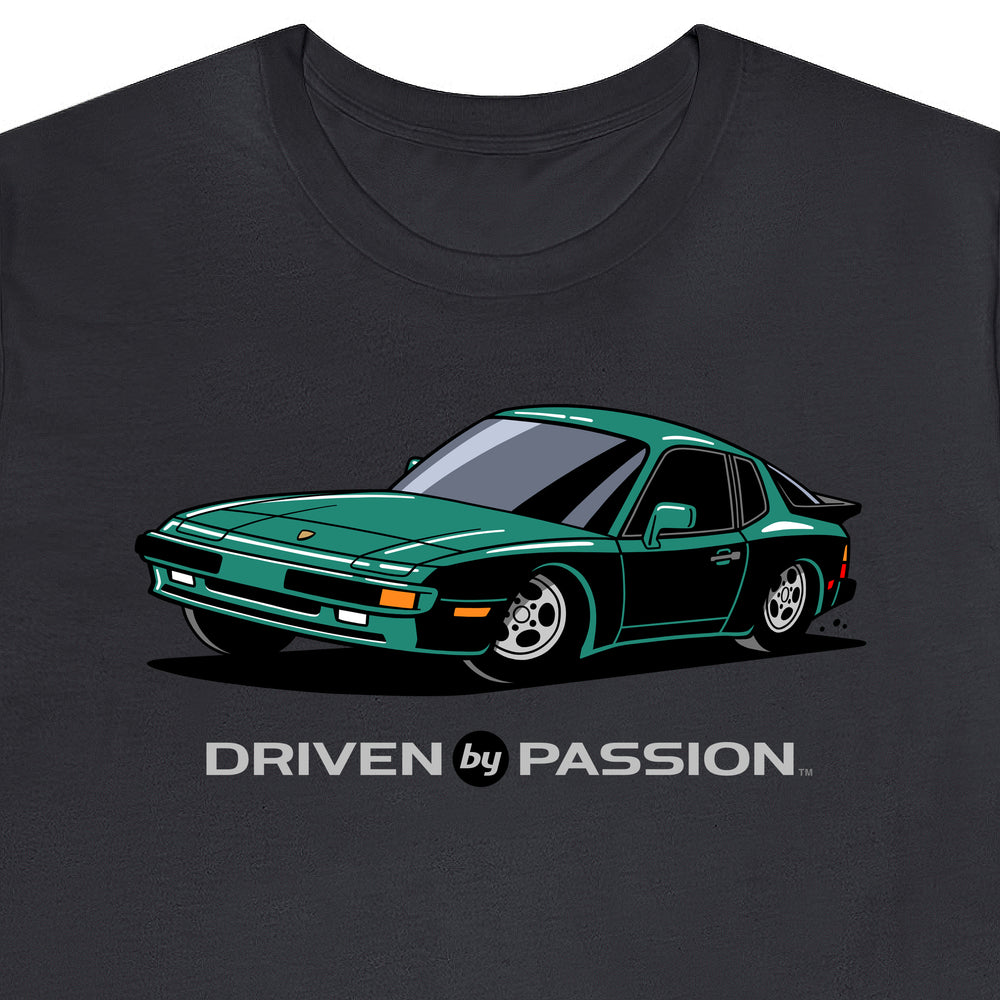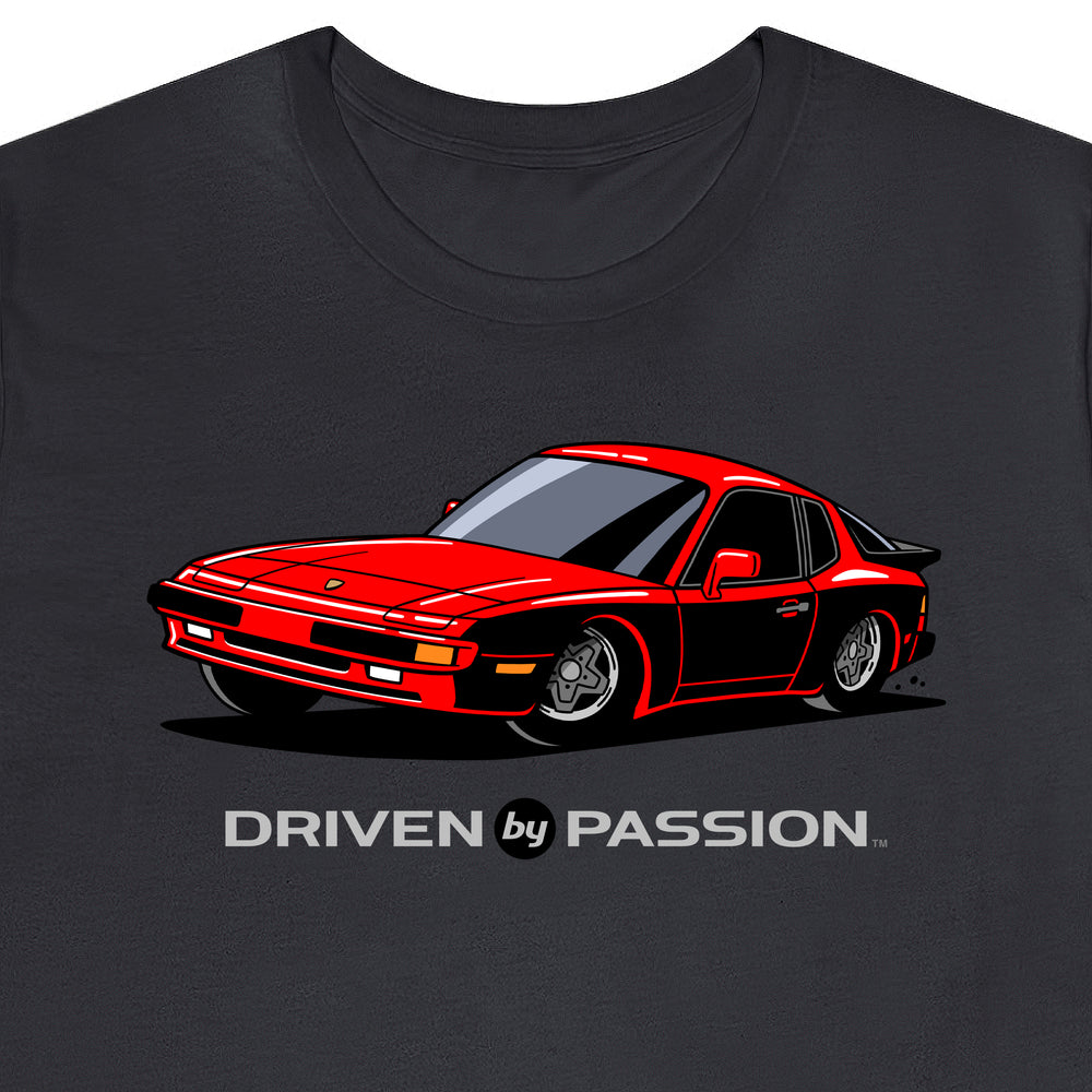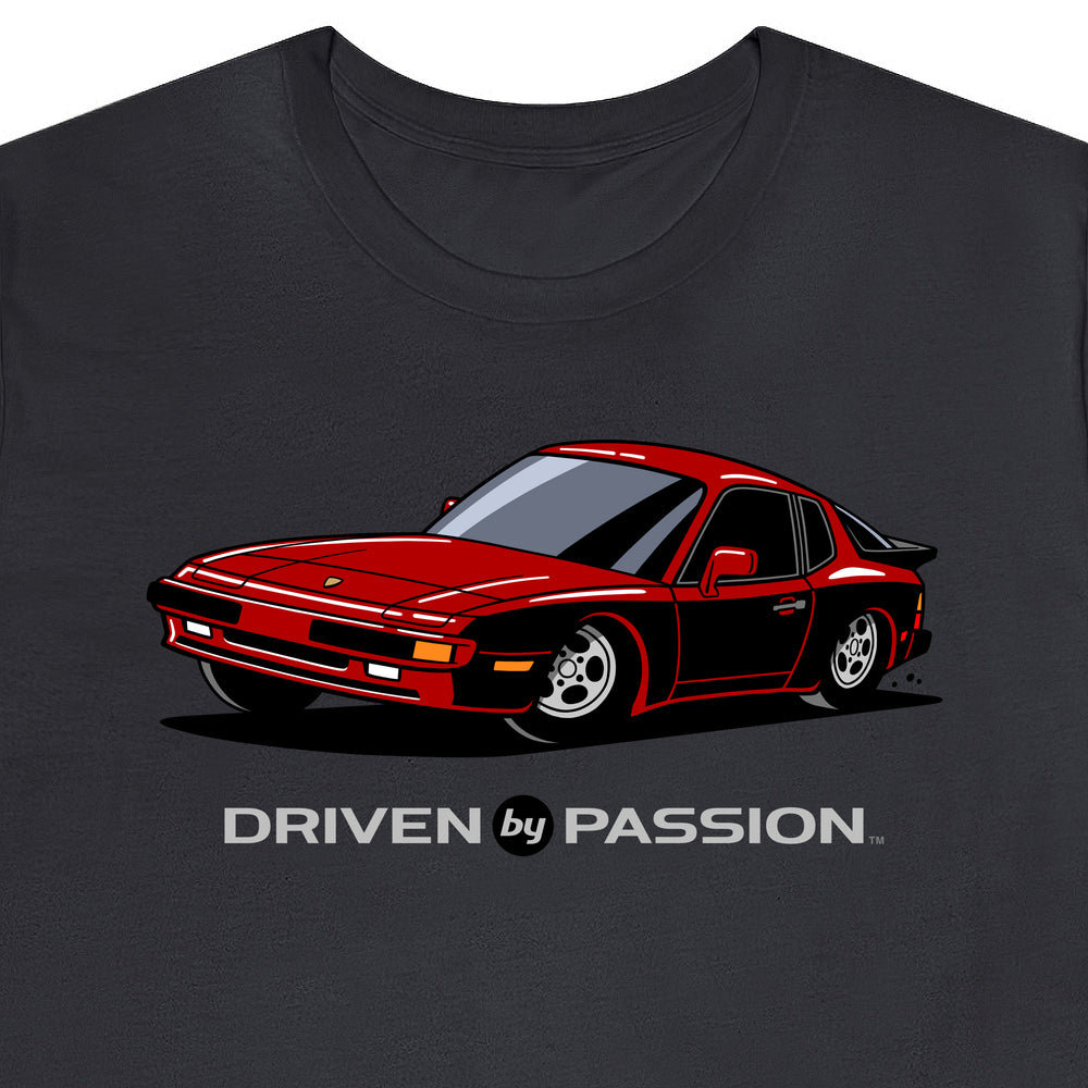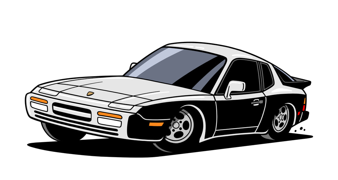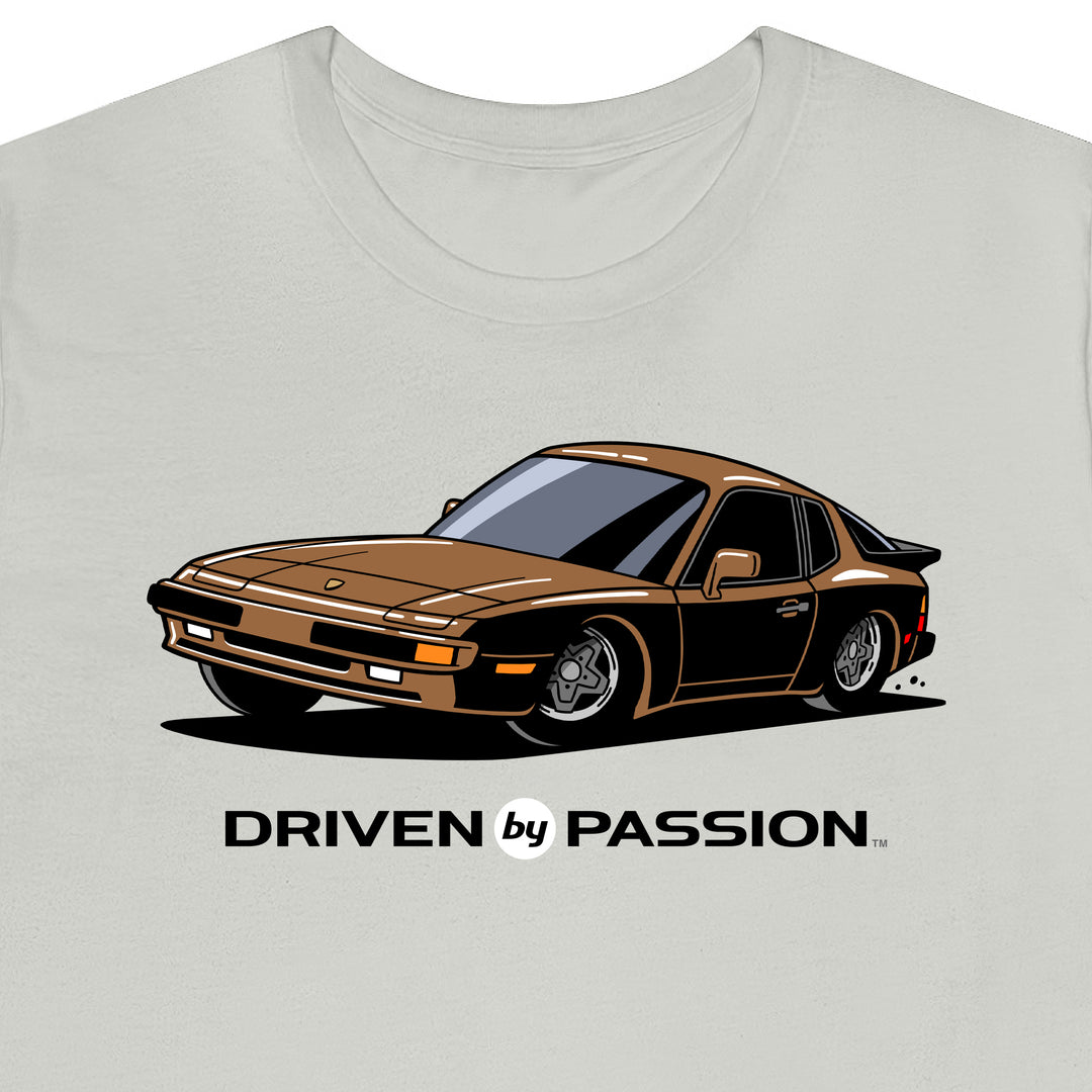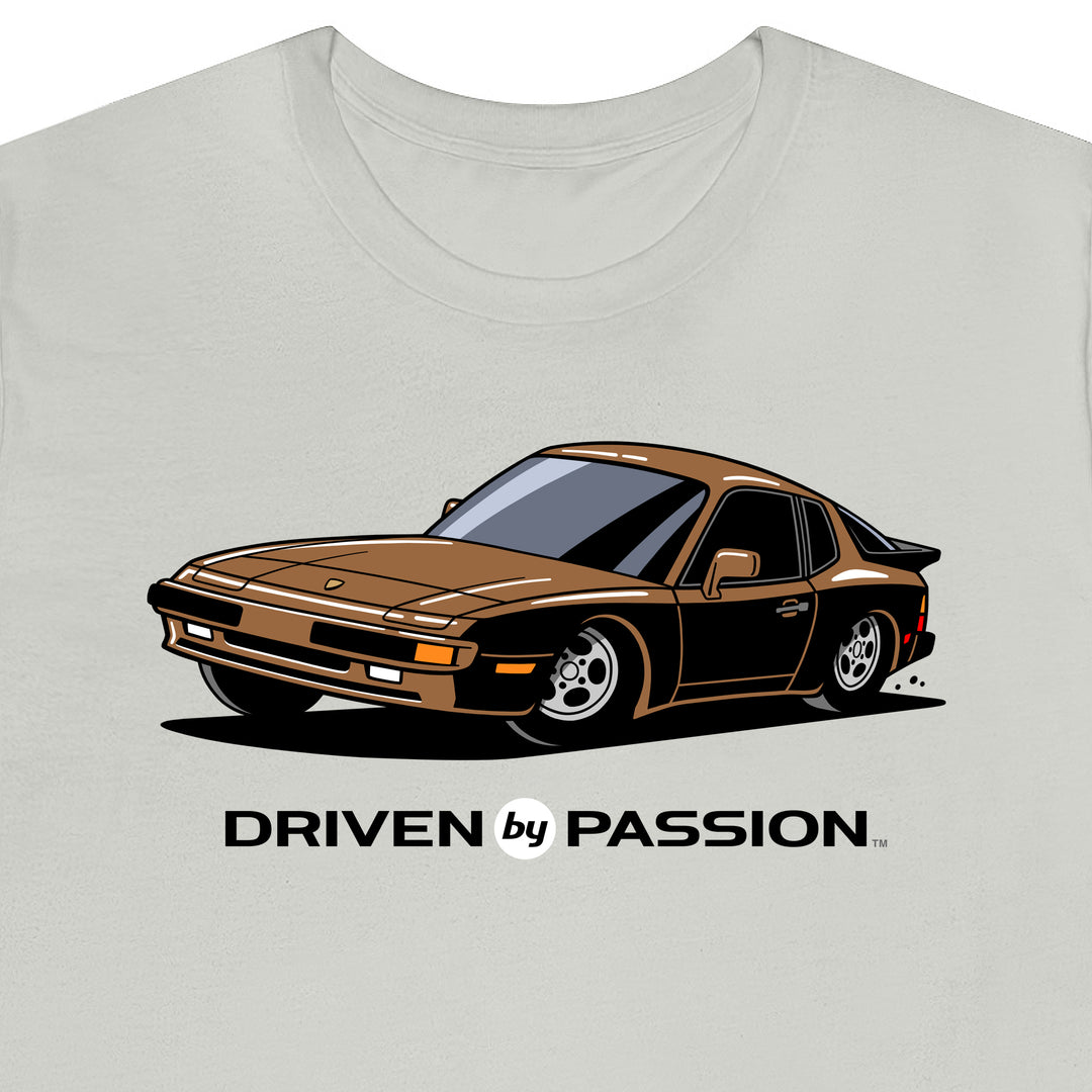 The 944 is the most iconic of the German carmaker's front engine sports cars with a curvaceous body that went against the grain of 1980s geometric styling. Yet it’s oh-so 80s. Get yourself a premium t-shirt featuring your favorite body with your choice of color and wheels.