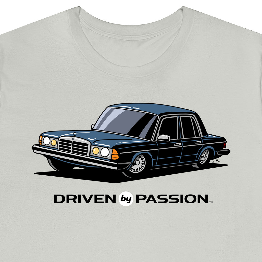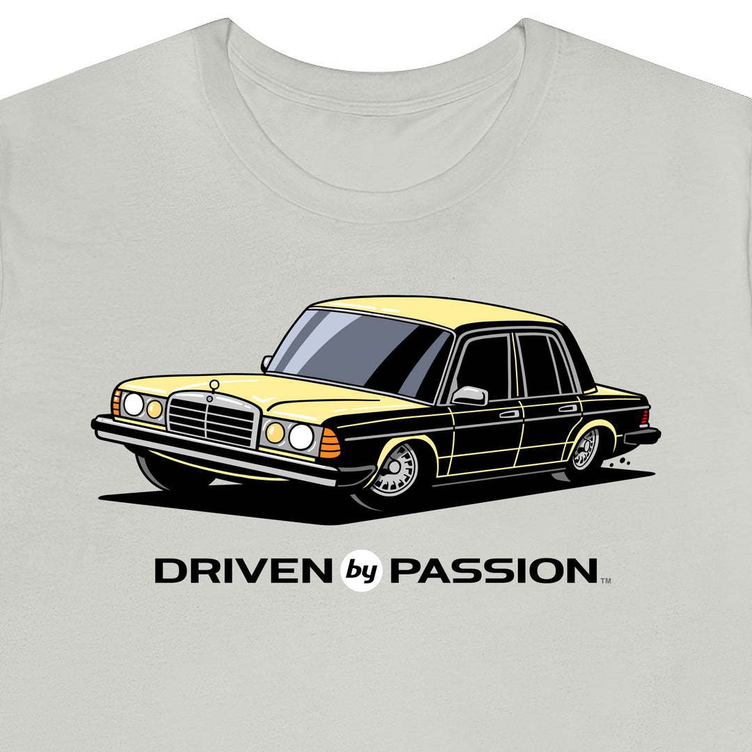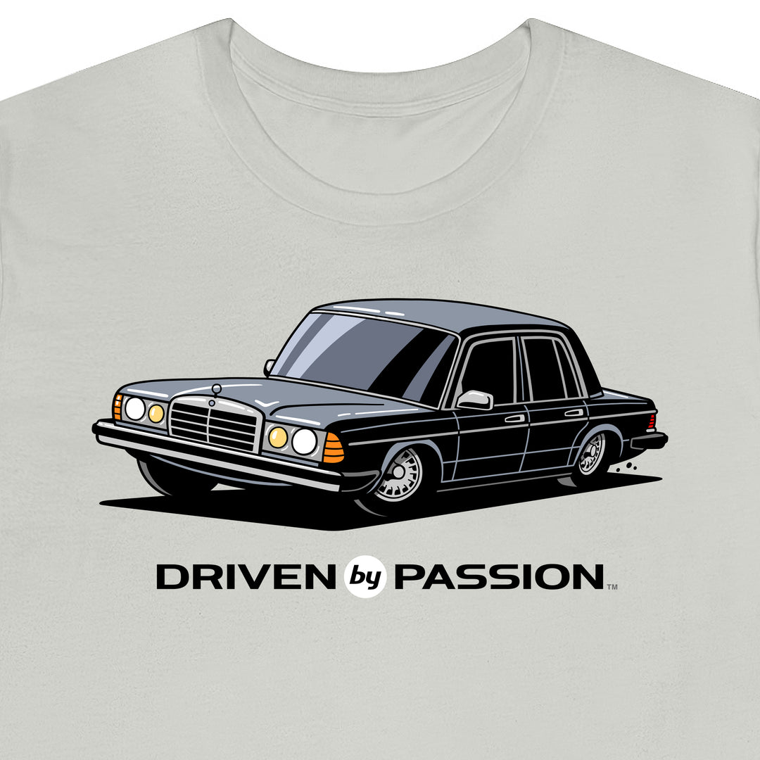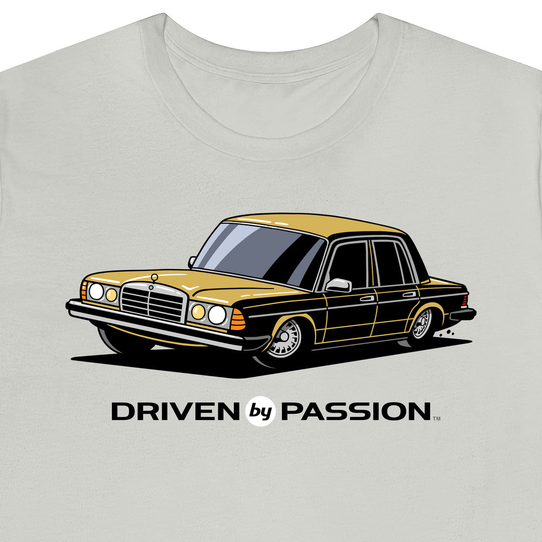Use the filters to select a W123 sedan design from over 30 paint colors with Fuchs "Bundt" wheels. All designs are available on a light or dark premium cotton t-shirt.